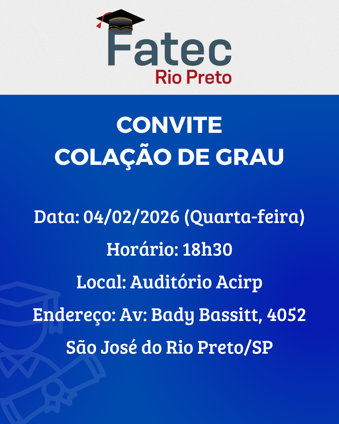 Colação de Grau Data: 04/02/2025 (Quarta-feira)