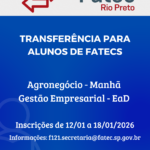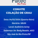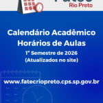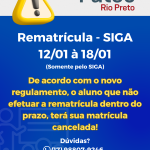 Atenção Alunos! A rematrícula será de 12/01 à 18/01, somente pelo SIGA. https://siga.cps.sp.gov.br/sigaaluno/applogin.aspx Não haverá atendimento presencial, somente por e-mail, telefone ou WhatsApp. f121.secretaria@fatec.sp.gov.br (17) 3217-8004 – Fixo (17) 98807-9246 – WhatsApp Início das aulas…